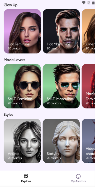 1. 获取权限:初次使用该软件需要获取一些必要权限,点击屏幕中的“Get your avatars”按钮。