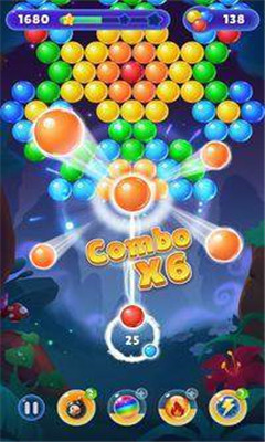 1. 发射泡泡:玩家通过滑动屏幕调整发射方向,松开手指发射泡泡。发射的泡泡会向上升起,碰到相同颜色的泡泡时会黏附在一起。