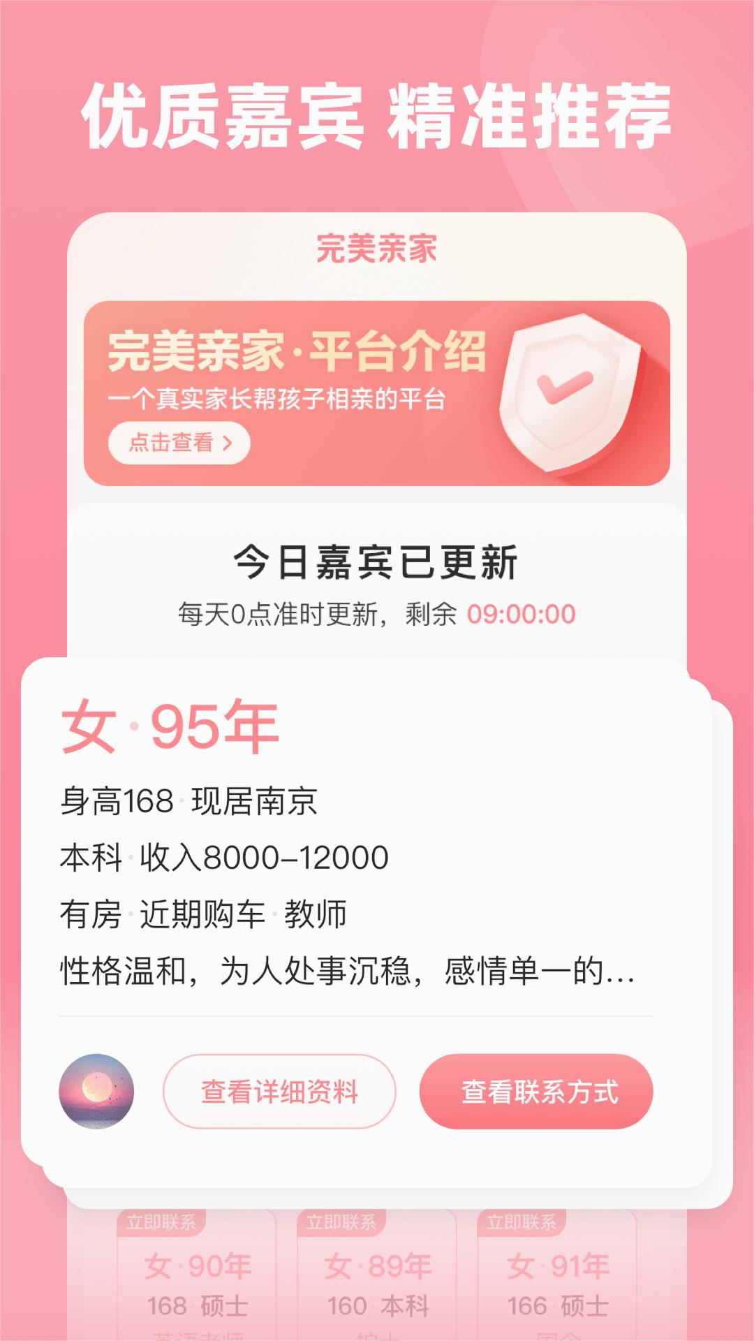 完美亲家相亲平台手机版以其丰富的用户资源、智能的匹配算法和便捷的沟通方式,为用户提供了一个高效、安全的相亲交友平台。无论是寻找真爱还是拓展社交圈,这款软件都是一个不错的选择。同时,软件还注重用户隐私保护,让用户在使用过程中更加安心。