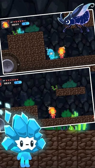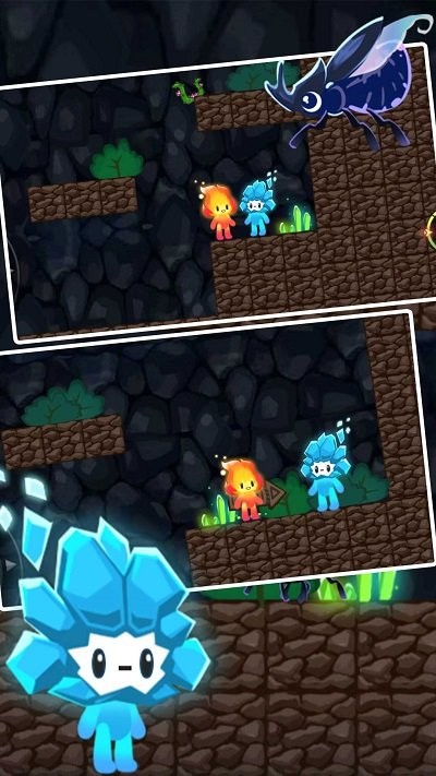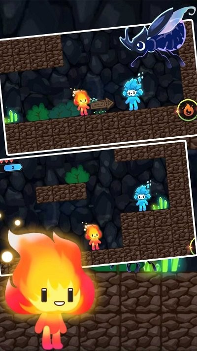 1. 角色选择:玩家可以选择扮演红蓝冰火人中的任意一位,另一位则由另一位玩家控制。