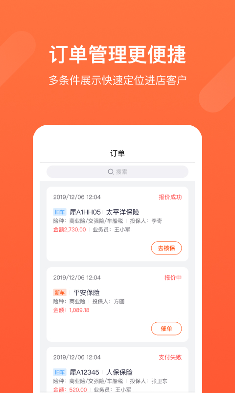 为其提供保险管理的工具,可以进行车险报价资料递交、保险知识学习等功能的管理app.
