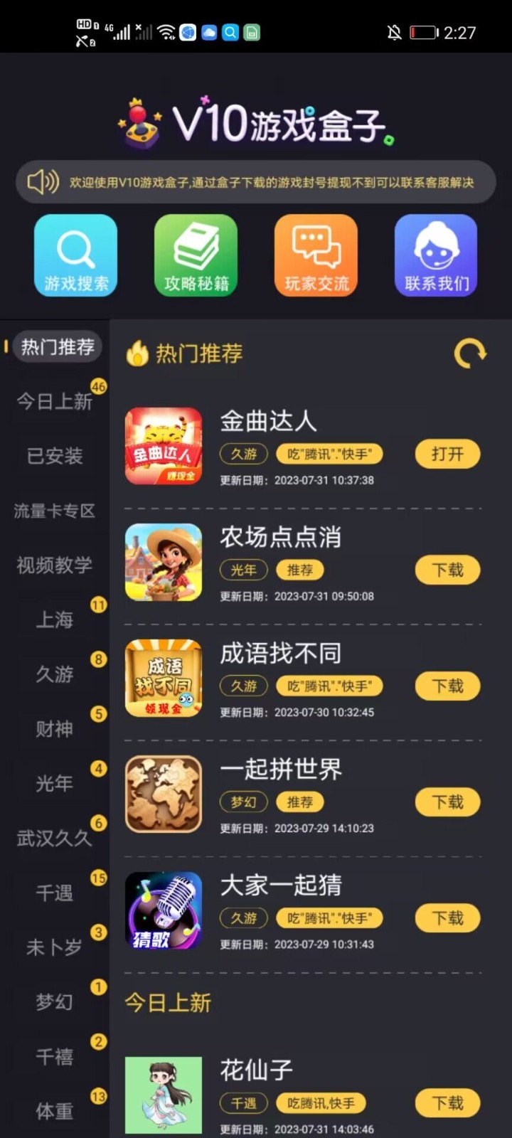 V10游戏盒子是一款专为游戏爱好者设计的一站式游戏管理与服务平台,集成了丰富的游戏资源、便捷的游戏管理工具以及社交互动功能,旨在为用户提供极致的游戏体验。
