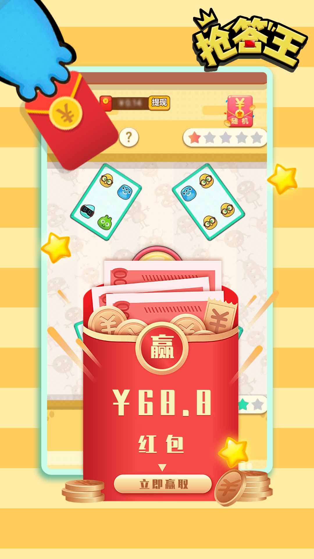 抢答王红包赚钱版是一款集知识问答与趣味互动于一体的休闲益智游戏。玩家在游戏中通过快速抢答各类问题来赢得奖励,同时还有机会获得现金红包,让学习与赚钱两不误。
