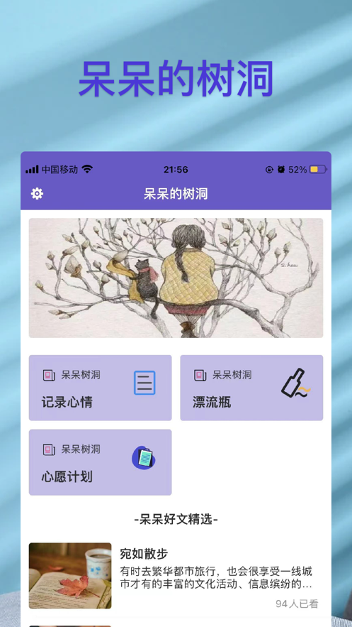 呆呆的树洞是一款集匿名倾诉、情感交流、心理解压于一体的社交应用。用户可以在这里以匿名的形式分享自己的心情、故事和困惑,寻找共鸣,获取建议,实现心灵的慰藉与成长。