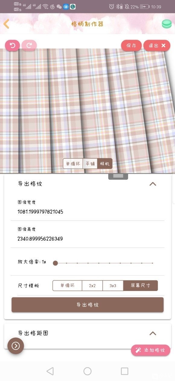 5. 导出功能:支持导出单循环、平铺图、对格图、格距图、样机图、PSD源文件等多种格式,满足用户在不同场景下的需求。