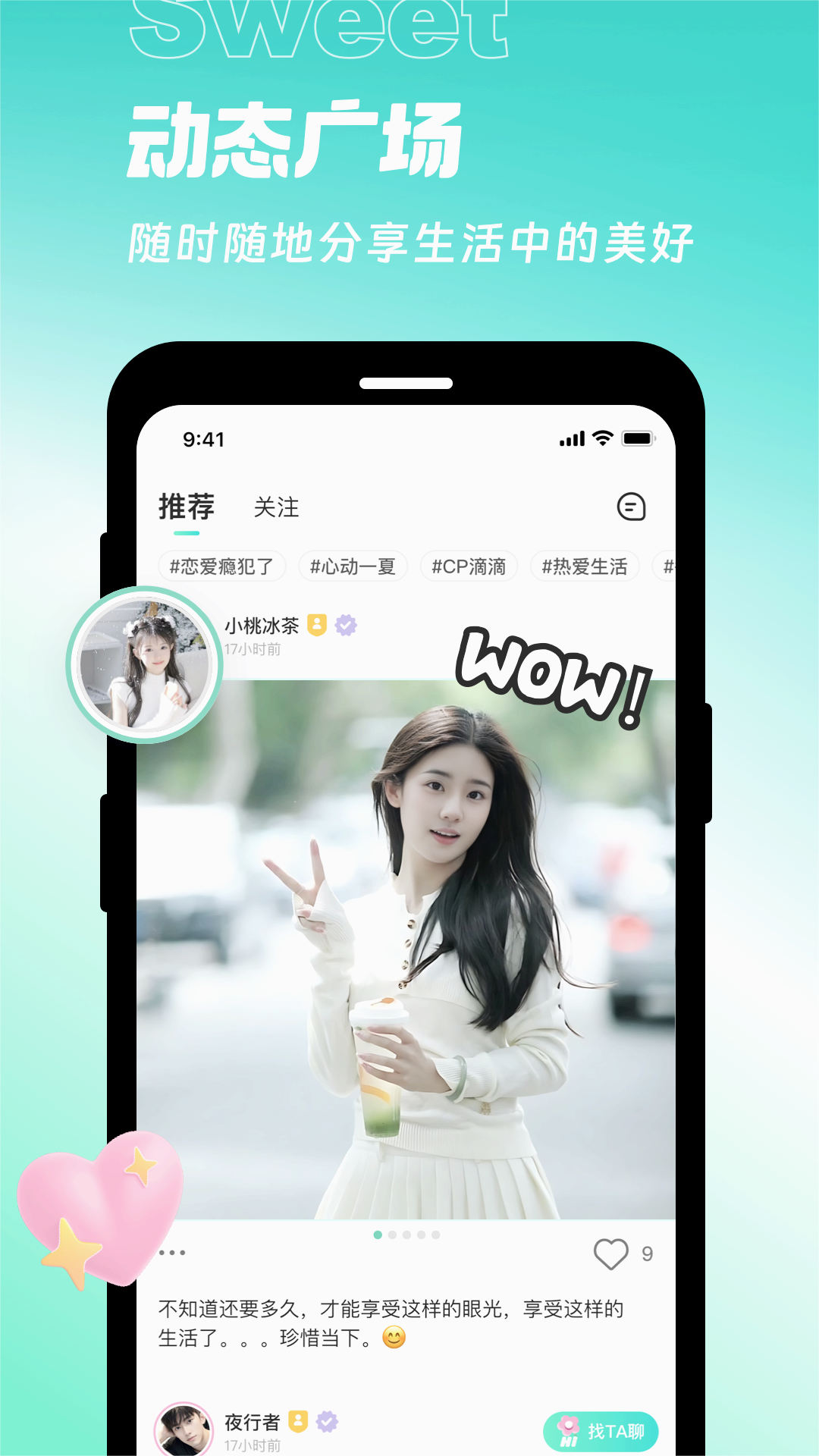 甜意是一款专注于提供情感交流与分享平台的社交应用,旨在帮助用户表达情感、发现共鸣,并促进人与人之间的深层次连接。