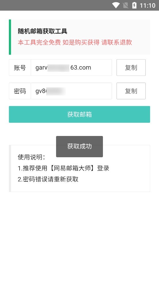 1. 随机邮箱生成:一键生成多个随机邮箱账号,方便用户选择使用。