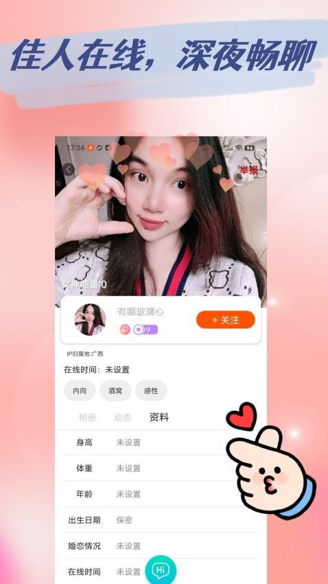 3. 完善资料:填写个人资料,包括头像、昵称、年龄、性别、兴趣标签等,提高匹配准确性。