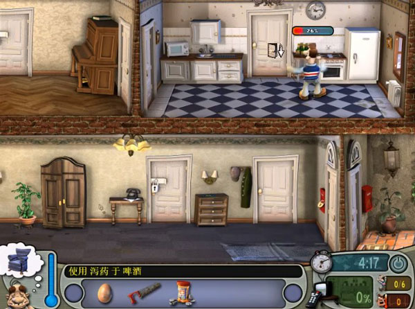 2. 游戏场景:游戏场景多样,包括客厅、厨房、浴室、门厅等多个区域,每个场景都有可供利用的道具和陷阱。