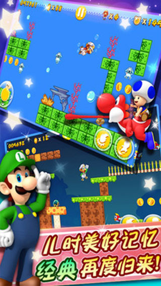 超级玛丽酷跑手游是一款经典与创新相结合的跑酷类游戏,将大家耳熟能详的超级玛丽角色与刺激有趣的跑酷玩法完美融合。玩家将操控玛丽或他的朋友们,在各种充满挑战与惊喜的关卡中奔跑、跳跃、躲避障碍,收集金币和道具,体验前所未有的冒险之旅。