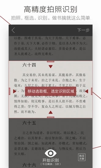 1. 快速摘要:利用萝卜书摘的OCR(光学字符识别)技术,用户只需拍照或上传书籍页面,APP即可自动识别并提取文字内容,快速生成摘要。