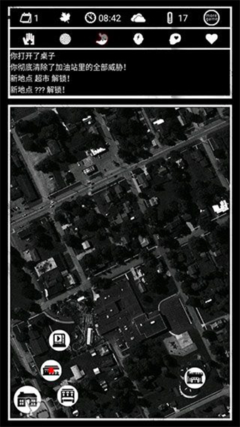 玩家需应对饥饿、疾病、低温、丧尸围攻四重威胁。饥饿值影响行动效率,感染值随受伤或低温上升,精力值不足会导致操作失误,生命值归零则游戏结束。冬季需通过火炉取暖降低感染风险,夜间丧尸活跃度提升,需合理规划行动时间。