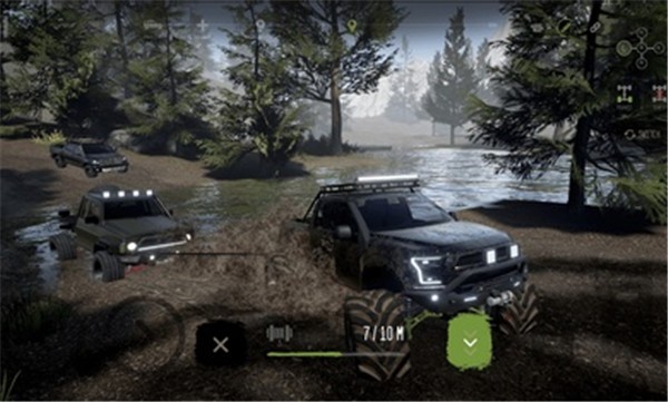 游戏以泥泞、崎岖地形为舞台,提供雪地、沙漠、沼泽、山地等12种环境,每张地图均设计独特物理特性。玩家可解锁30余款越野车型,涵盖皮卡、硬派SUV及专业越野车,每款车均具备差异化性能参数。游戏采用NVIDIA PhysX物理引擎,模拟真实车辆重量分配、轮胎抓地力及碰撞损伤,结合昼夜循环与随机天气(暴雨、沙尘暴等),打造高沉浸感驾驶体验。