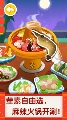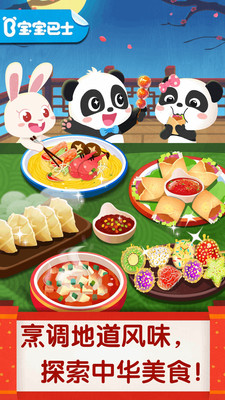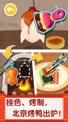 《宝宝巴士之中华美食》是一款专为3-8岁儿童设计的沉浸式中华美食文化启蒙游戏。游戏以“寓教于乐”为核心,通过模拟经营中华美食餐厅的情境,让孩子在亲手制作北京烤鸭、四川火锅、广东虾饺等经典菜品的过程中,学习传统美食的制作工艺、地域特色及文化背景。游戏以色彩鲜艳的卡通画风、生动有趣的角色互动和丰富的知识体系,打造了一个充满童趣的“中华美食小世界”。