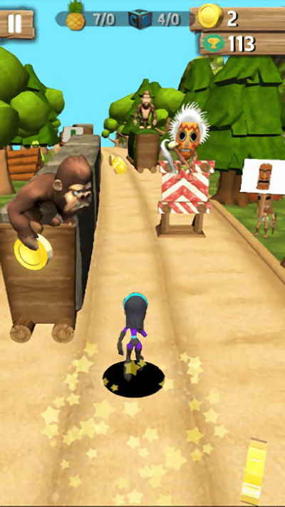 玩家需选择超人角色,在宇宙、丛林、城市等主题赛道中奔跑,避开外星人、陷阱等障碍,同时收集金币、水果等道具。金币可用于购买新角色、升级技能或建造虚拟家园。游戏以Q版卡通画风呈现,操作简单易上手,结合紧张的背景音乐与动态特效,营造出轻松刺激的跑酷体验。