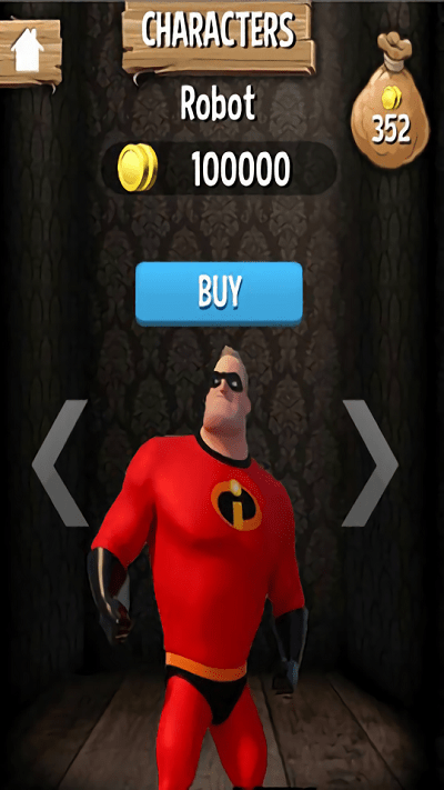 1. 角色选择:游戏初始提供超能先生、弹力女超人等基础角色,后续可通过金币解锁巴小飞、小杰等电影经典角色,每个角色拥有独特技能(如弹力跳跃、高速冲刺)。