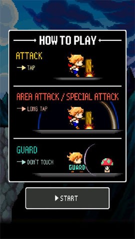 1. 基础操作入门:角色自动横向移动,点击屏幕发动普通攻击,长按触发范围攻击,无操作时自动防御但持续扣血。