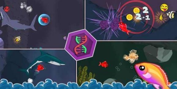吞噬目标数量决定进化方向,解锁数十种搞怪鱼类皮肤,如彩虹鱼、机械鱼等,提升视觉趣味性。