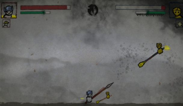 角色移动依赖武器支撑,攻击需结合移动轨迹,形成“移动即攻击”的独特机制。体力条限制移动距离,过度冲刺会陷入“难受”状态,易被对手反击。