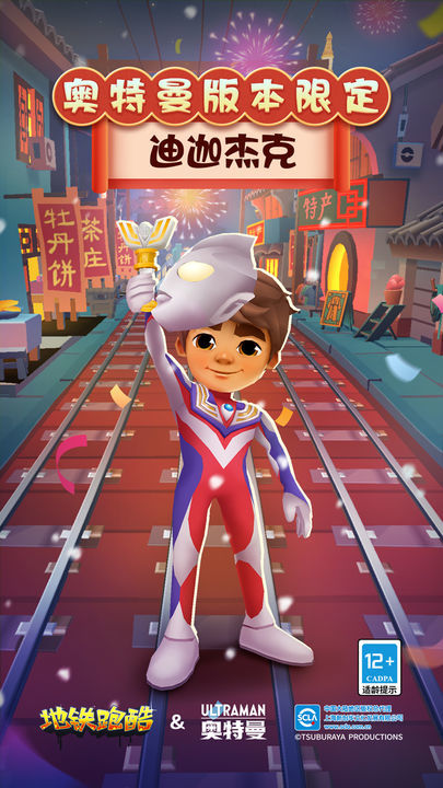 《地铁跑酷奥特曼联动》是经典跑酷游戏《地铁跑酷》与日本特摄IP奥特曼的跨界合作版本,将光之战士的热血元素融入地铁轨道冒险。玩家操控奥特曼角色穿梭于全球特色城市地图,在躲避列车、障碍物的同时收集金币与道具,体验“速度与光之力量”的双重刺激。游戏通过联动角色、限定皮肤、创新玩法及社交竞技系统,打造沉浸式跑酷体验,满足玩家对角色扮演、竞技挑战与IP情怀的多元需求。