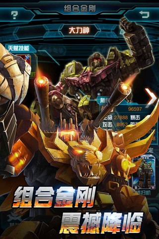 - 特色系统:组合金刚合体、技能碎片抢夺、情感关系加成(如擎天柱与艾丽塔组队提升防御)。
