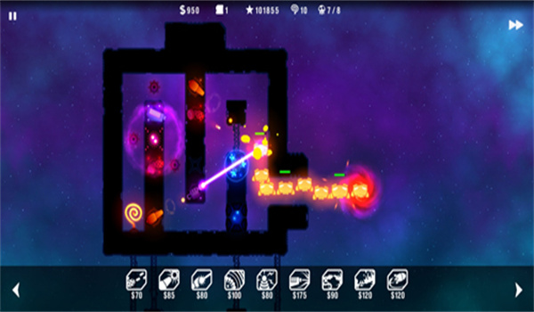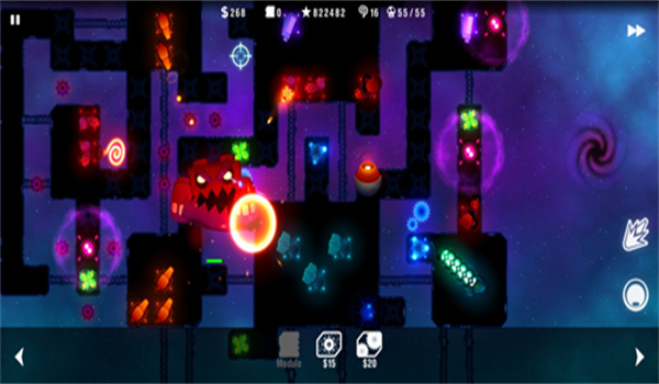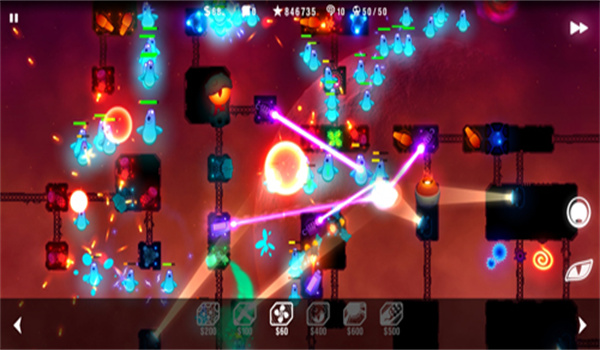 《炫光防御》是一款极具创意与视觉冲击力的塔防类策略游戏。它将独特的炫光风格与经典的塔防玩法完美融合,玩家需要构建各种防御设施,抵御一波又一波来势汹汹的敌人,在充满奇幻色彩的炫光世界中展开一场场惊心动魄的守卫之战。