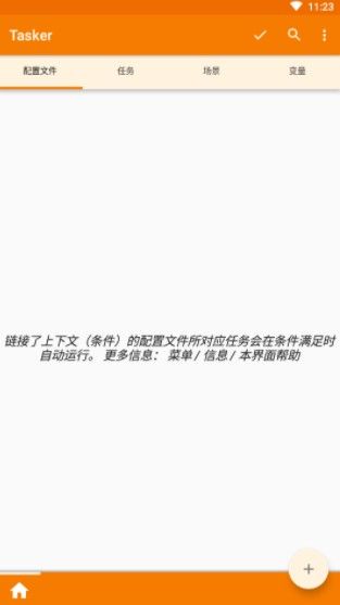 - 回到 Tasker 主界面,点击“配置文件”选项卡,点击“+”号创建新配置文件。