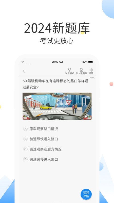 2. 视频详解:每道题配备独立视频讲解,由资深教练结合实景动画演示。