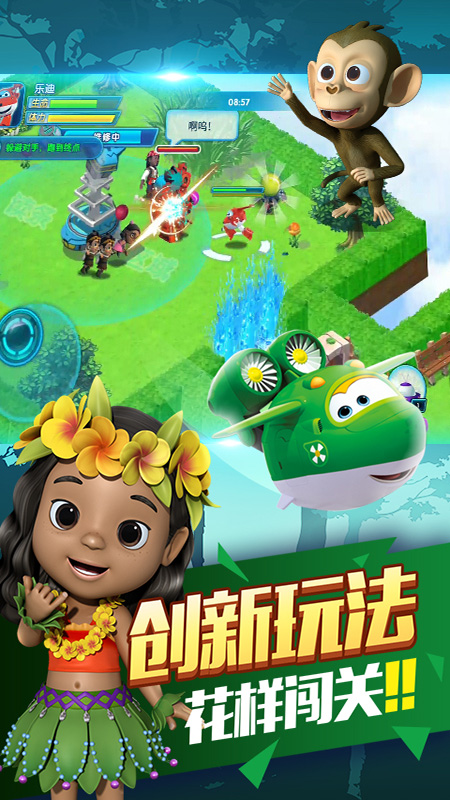 《超级飞侠4缤纷乐园》是一款基于全球知名动画IP《超级飞侠》改编的跑酷冒险手游,由官方正版授权开发。游戏以Q版卡通风格呈现,融合了跑酷、战斗、角色收集与场景探索等多元玩法,旨在为玩家打造沉浸式的动画世界冒险体验。无论是儿童玩家还是成年玩家,均能通过简单操作享受紧张刺激的跑酷乐趣,同时重温动画经典剧情。