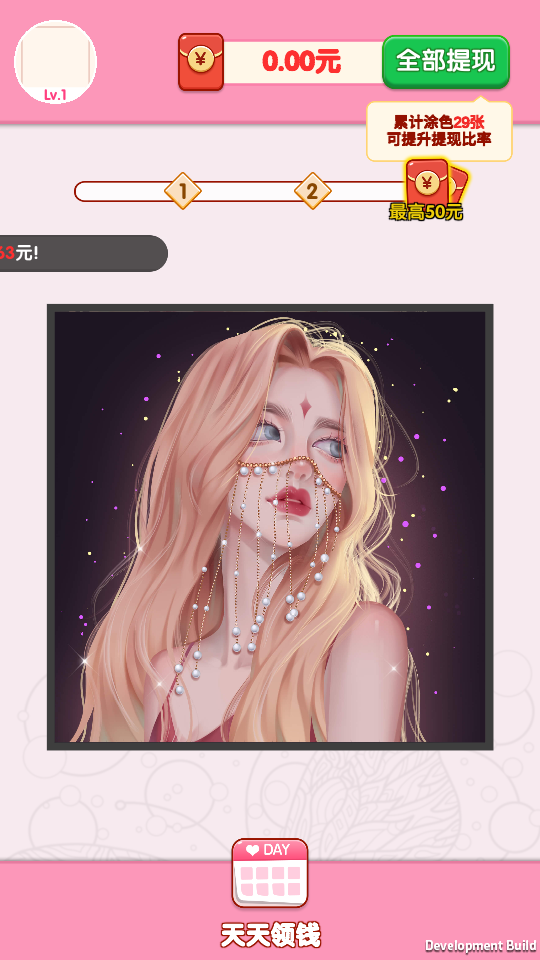 完成涂色关卡可积累成就点数,解锁特殊画笔与高级道具,同时参与限时活动赢取现金红包,兼顾娱乐性与收益性。