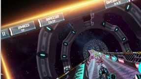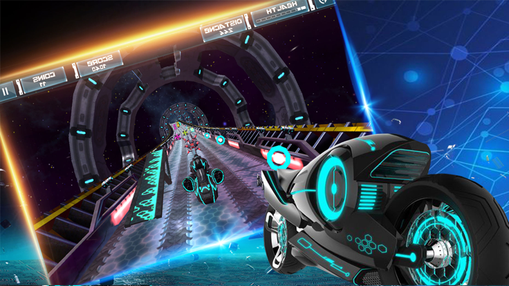 采用3D卡通渲染技术,太空场景光影效果细腻,配合电子音乐与赛车引擎音效,营造科幻竞速氛围。