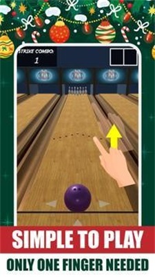 拖动屏幕调整保龄球发射角度,滑动力度条控制投球速度,释放后球体沿抛物线轨迹滚动,需精准计算落点以击倒木瓶。