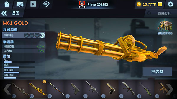 提供20+种现代枪械,包括突击步枪、狙击枪、轻机枪等,每类武器具有独立伤害值、射程、后坐力参数。新增皮肤系统,支持枪械外观自定义。