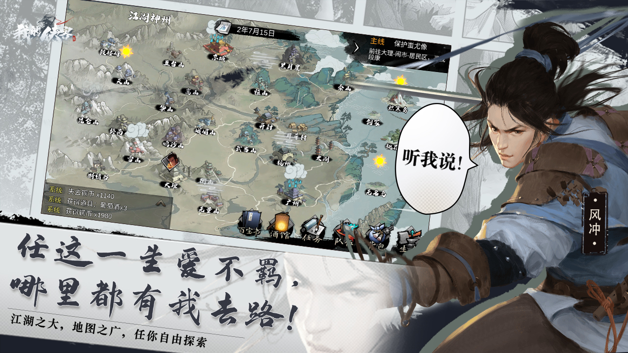 2. 自由探索:开放式的江湖地图让玩家可以自由探索,发现隐藏的宝藏、任务和秘密。