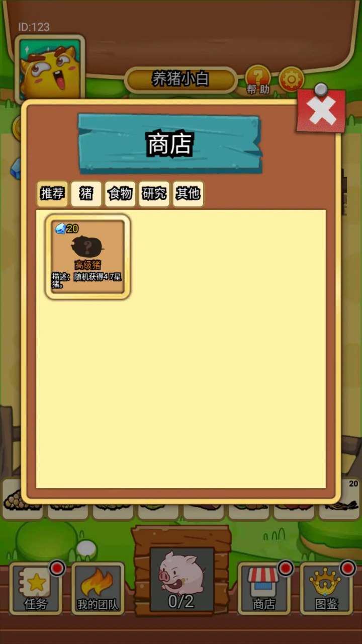 2. 养育猪猪:购买并照料初始的猪猪,逐步提升它们的等级和品质。
