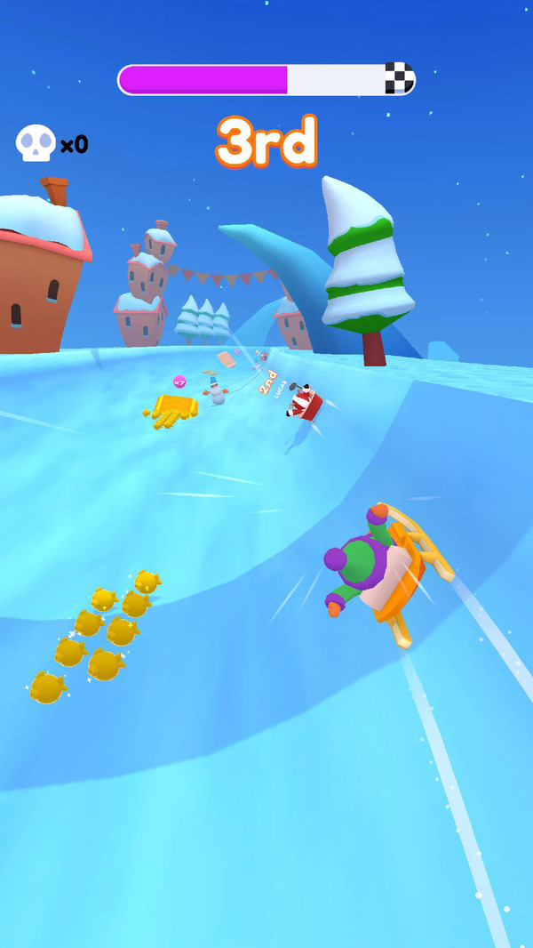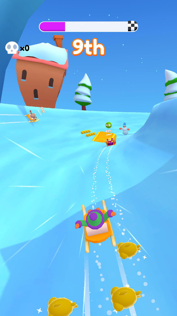 4. 多人对战:支持多人在线对战模式,玩家可以与全球的雪橇骑士一决高下,体验真正的竞速快感。