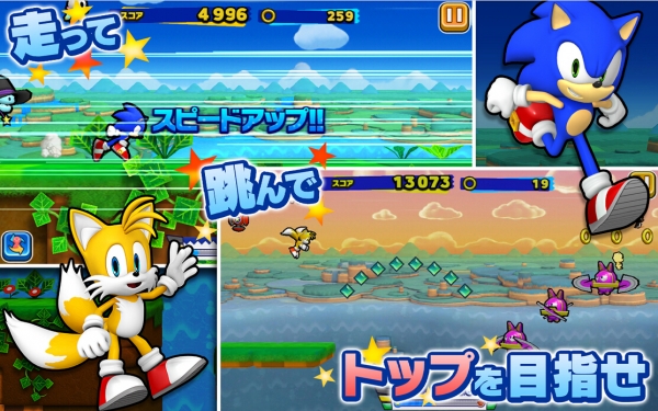 1. 基本操作:玩家通过左右滑动屏幕控制索尼克左右移动,上滑跳跃,下滑下蹲滑行,点击屏幕任意位置进行冲刺。