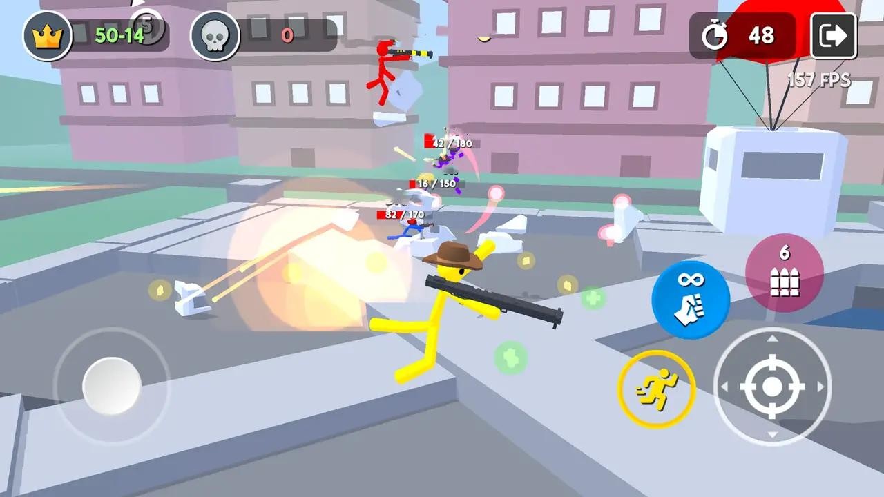 火柴人乱斗场是一款基于物理碰撞的2D横版动作游戏,玩家将控制一个简化的火柴人角色,在精心设计的关卡中与其他火柴人进行战斗。游戏以其独特的艺术风格、快节奏的战斗和丰富的游戏内容吸引着众多玩家。