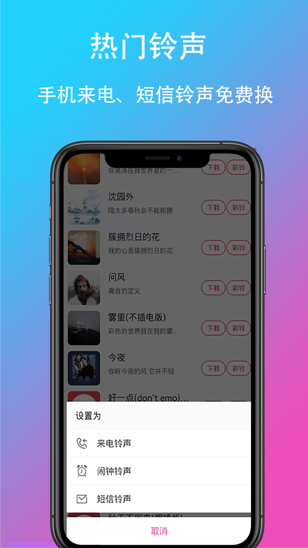 1. 下载和设置:用户可以在软件中下载喜欢的铃声并直接设置为手机来电、短信、闹钟等不同类型的声音。