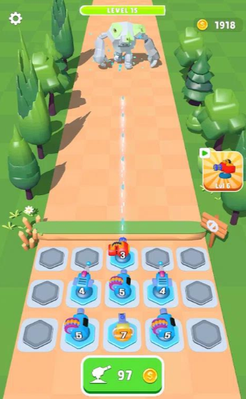 3. 合并升级:当相同类型的枪塔相邻时,可以合并成一个更高级的版本,提供更高的伤害、射程或特殊技能。