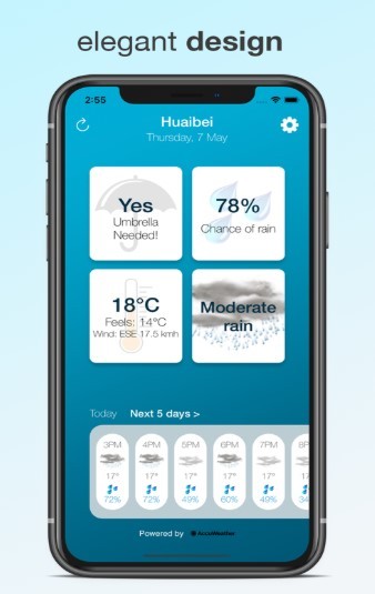 “雨伞提醒”能够带给人们大量详细的天气数据,包括每小时的降雨预报以及降雨的可能性,因此您可以知道一天中的什么时候最有可能下雨。该应用程序还提供所有常规天气指标,包括未来5天的天气预报。您可以让GPS查找位置,也可以手动设置位置。全部完全免费。