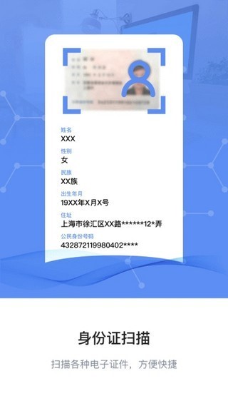 1、证件扫描:支持多种证件类型OCR文字识别:身份证,银行卡,驾驶证,名片,营业执照,护照,为用户提供最方便快捷的证件信息录入体验;