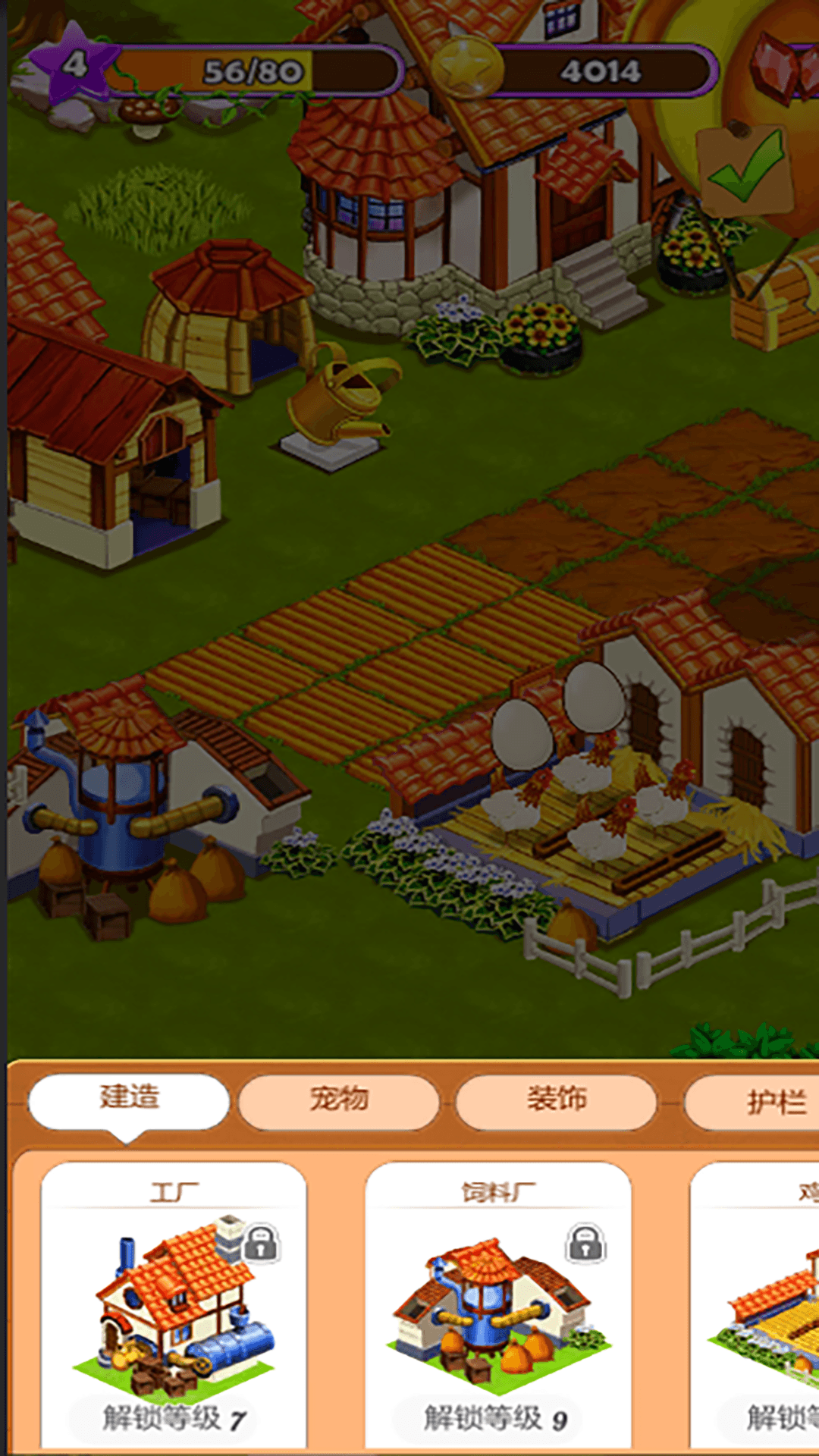 3. 建造设施:利用游戏内资源或货币建造仓库、加工厂、农舍等设施,提高农场的生产效率和舒适度。