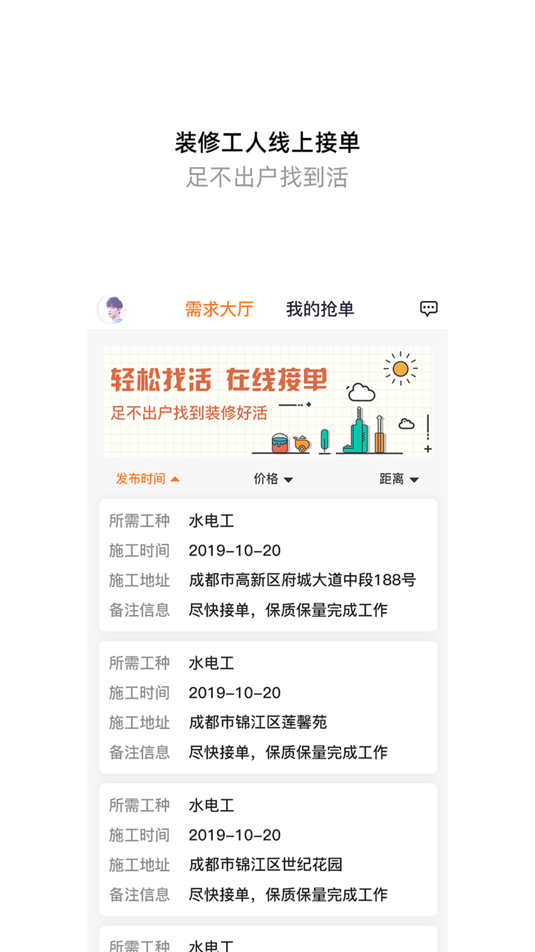 5. 消息推送:重要通知和订单更新会通过App即时推送,确保工人不会错过任何重要信息。