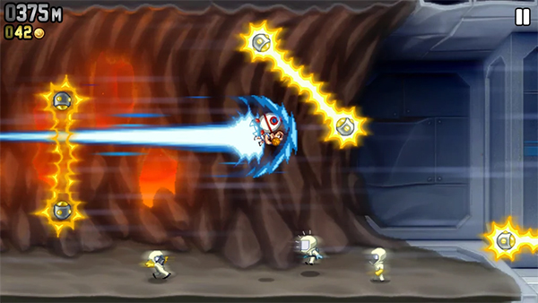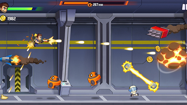 《疯狂喷气机》国际版是一款结合了射击、跑酷与冒险元素的游戏,玩家将扮演一名使用高科技装备的喷气背包冒险家,在充满挑战的都市环境中穿梭,避开各种障碍物,同时消灭敌人,收集金币和特殊道具,解锁新装备和技能。