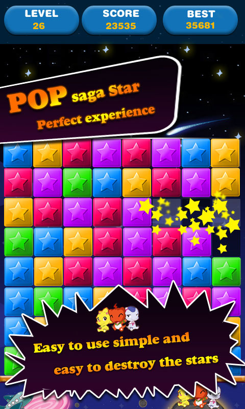 2. 经典玩法:游戏采用经典的消除游戏玩法,玩家可以通过点击两个或两个以上相同颜色的星星来消除它们。