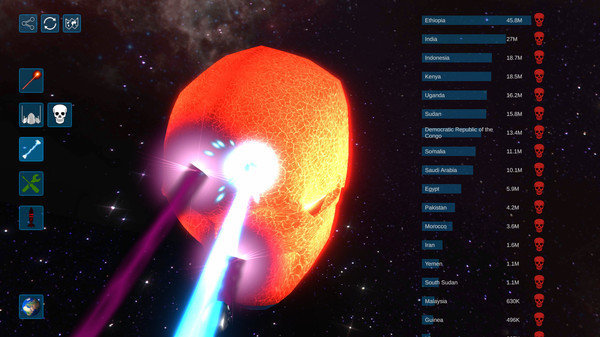 3. 丰富武器系统:解锁并升级多种毁灭性武器,如激光炮、黑洞、陨石雨等,观察不同武器对星球造成的不同效果。