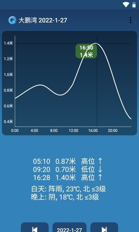 4. 历史数据查询:支持查看过去几天的潮汐记录,方便用户分析潮汐趋势。