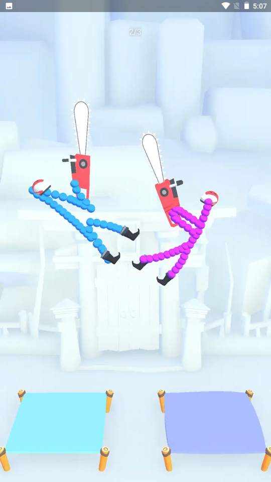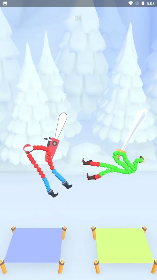 2. 对战模式:完成创作后,玩家进入对战阶段,与其他在线玩家或AI控制的对手进行蹦床对决。通过操控角色跳跃、碰撞,使对方的涂鸦作品受损,同时保护自己的作品不被破坏。