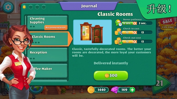 2. 日常运营:通过点击、拖拽等简单操作,安排员工工作、接待客人、升级房间和设施,以及处理各种突发事件。